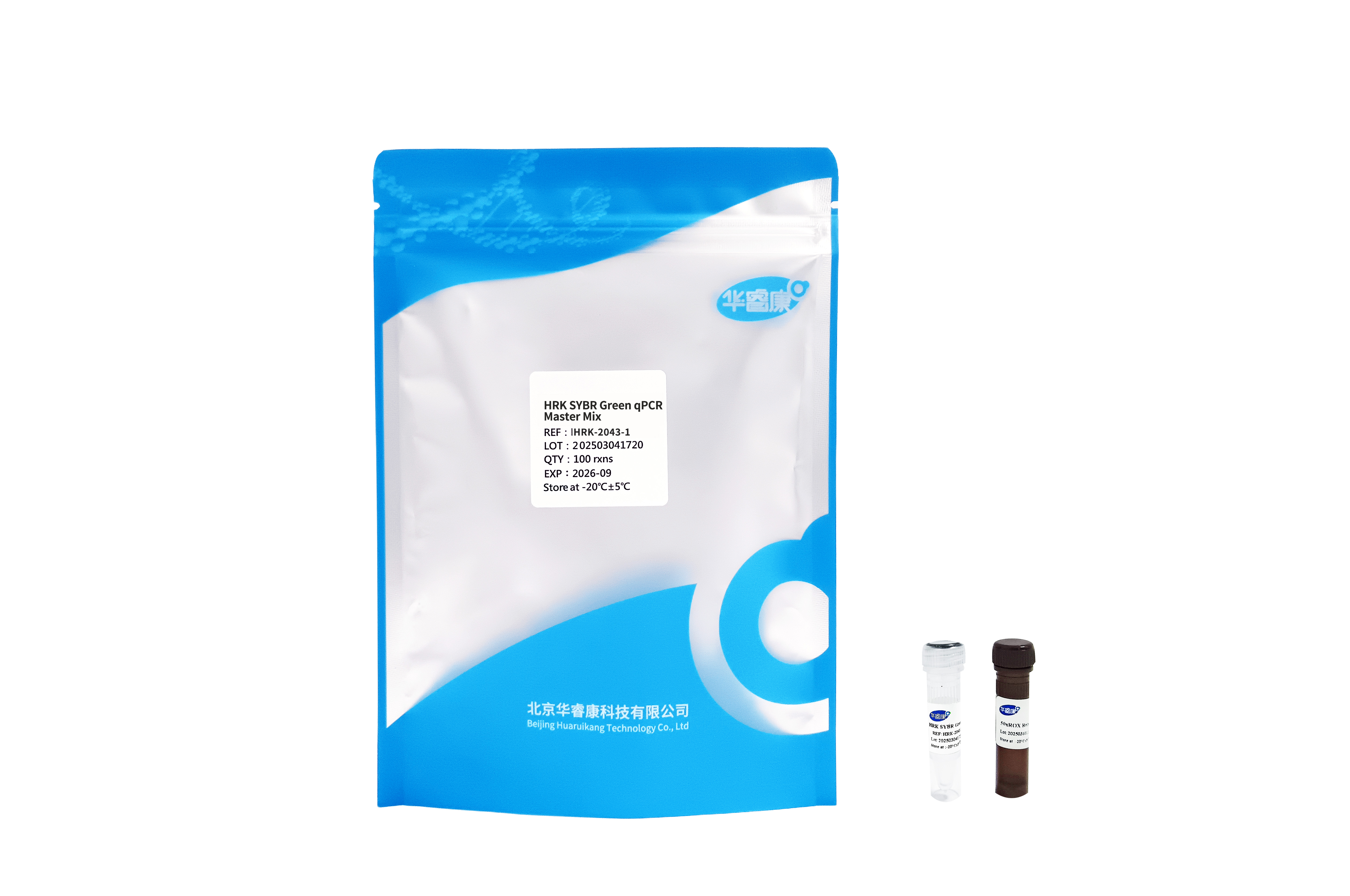 ︱产品简介 本产品是采用 SYBR Green I 嵌合荧光法进行 Real Time PCR 的专用试剂。产品中含有 Real Time PCR 反应的最适浓度 SYBR Green I,进行实验时,PCR 反应液的配制十分方便简单。 本产品 Buffer 经过优化改良,可以抑制非特异性反应,能够在更广的范围内进行准确定量。 本产品可以在宽广的定量区域内得到良好的标准曲线,对目的基因进行准确定量、检测,重复性好,可信度高。 ︱数据展示 ★ 使用 HRK SYBR Green qPCR Master Mix 对不同GC含量(44.2-62.5%)或片段长度 (86-249bp) 的序列进行扩增,扩增效率良好并且没有偏好性。用 HRK SYBR Green qPCR Master Mix 对10个管家基因进行扩增,扩增效率分别和GC含量(左图)、片段大小(右图)进行散点图的绘制,扩增效率在95%-105%的范围内,试剂扩增效率不受扩增子本身的特征或扩增长度的影响。